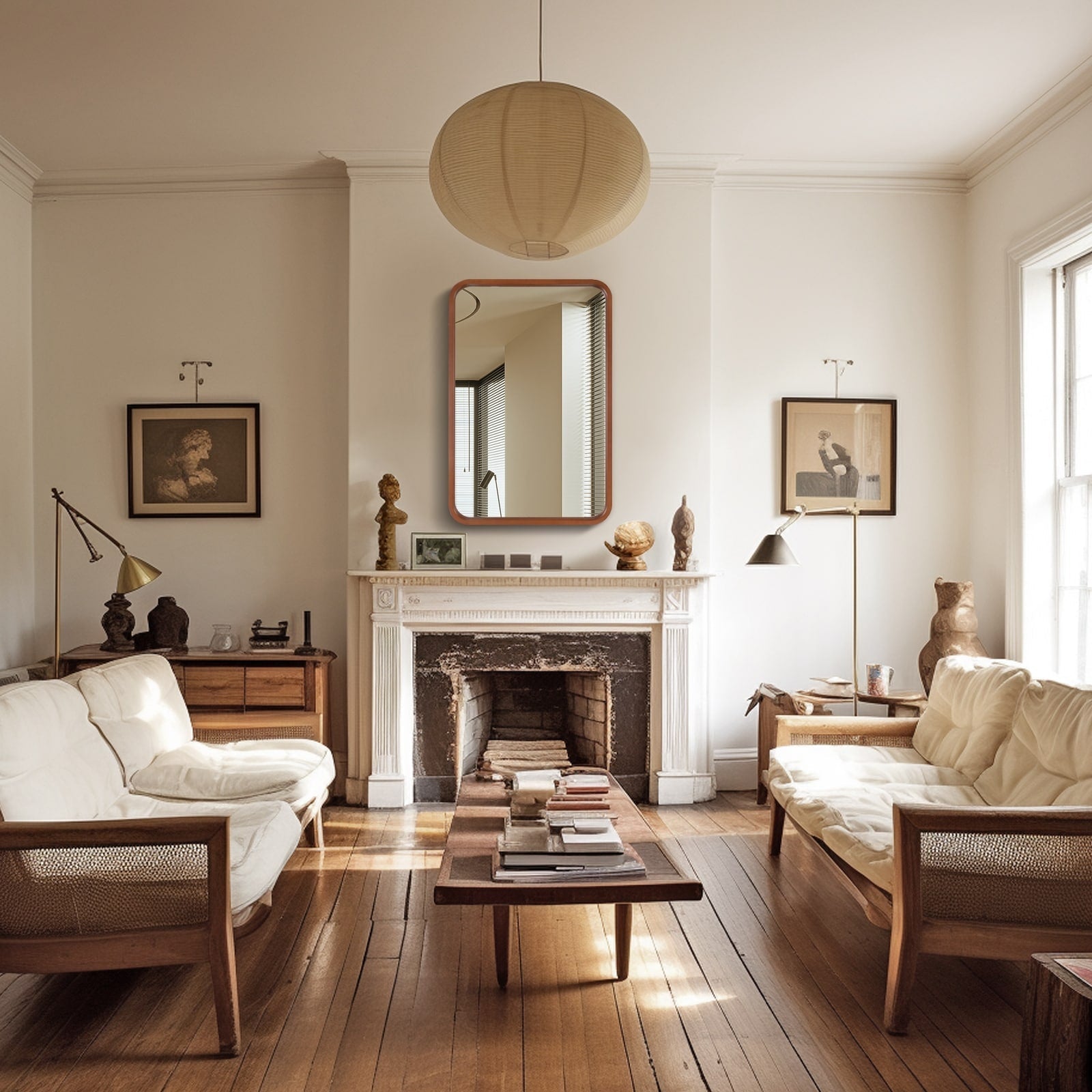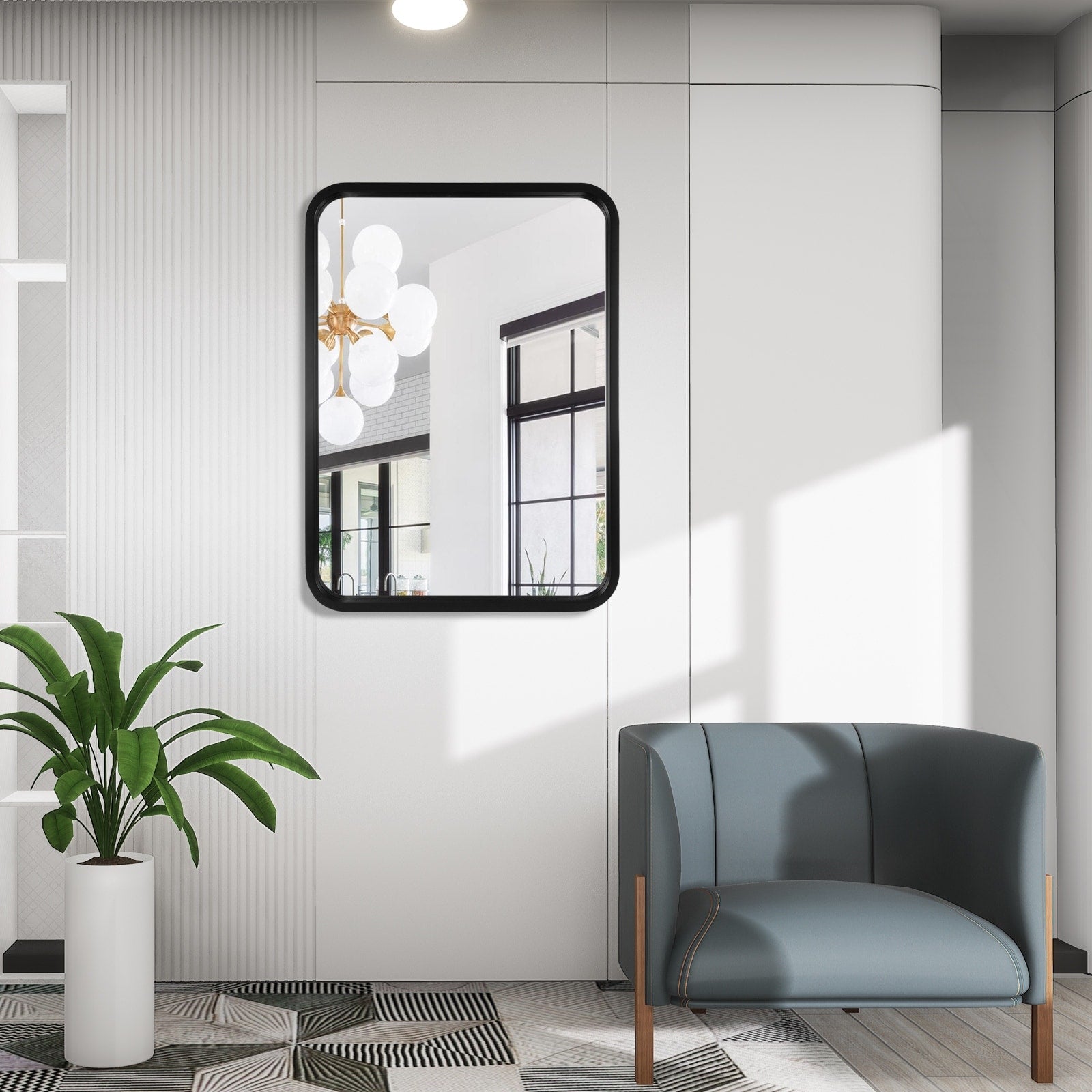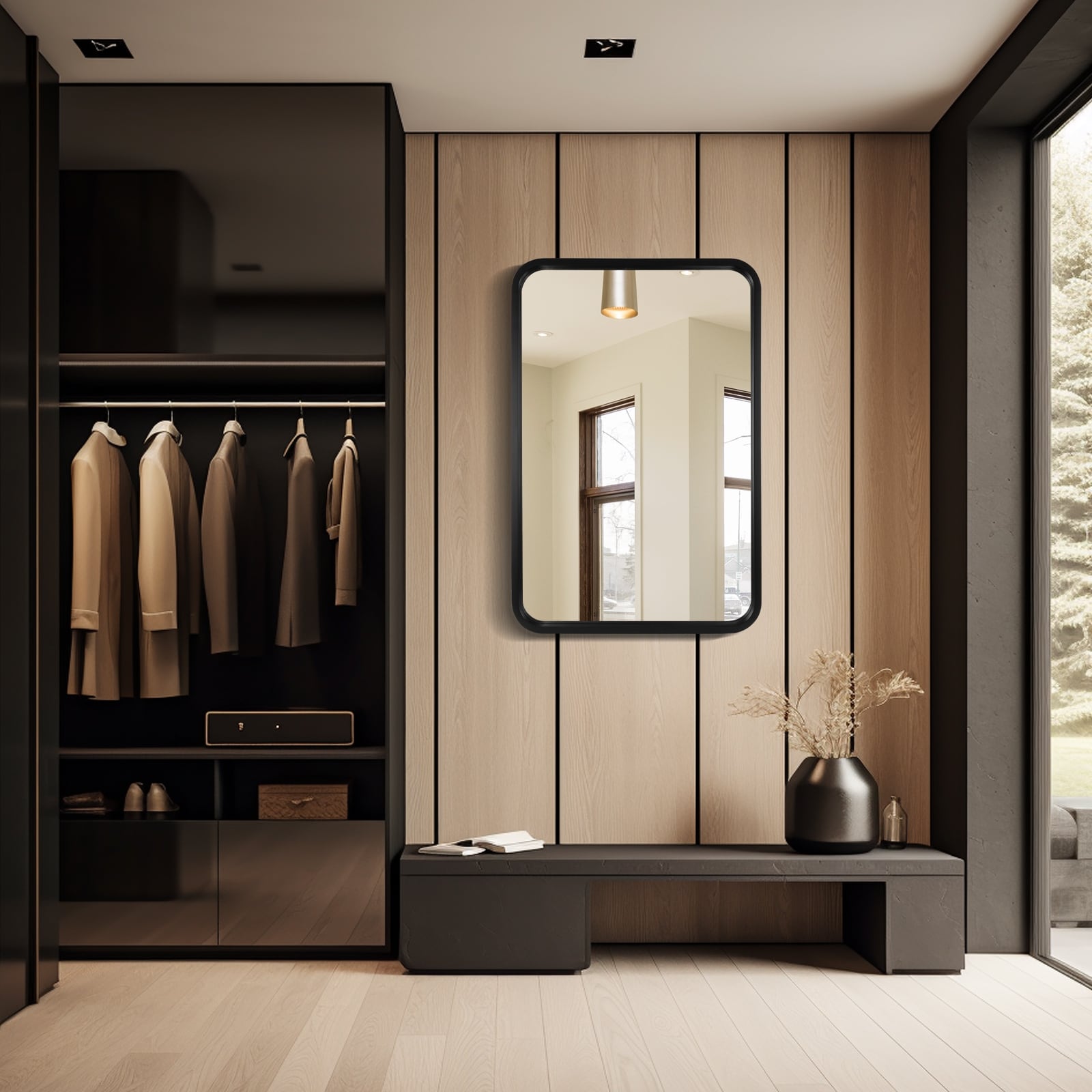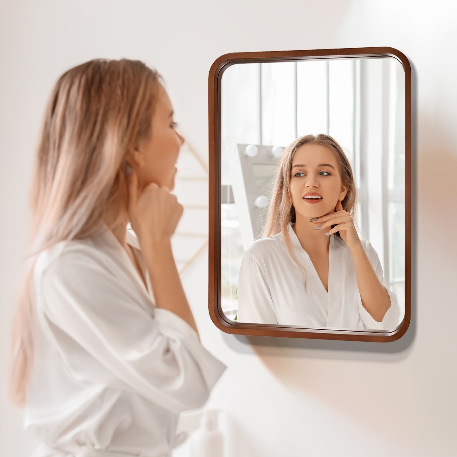 Round Corner Rectangle Farm Wall Mirror with Solid...