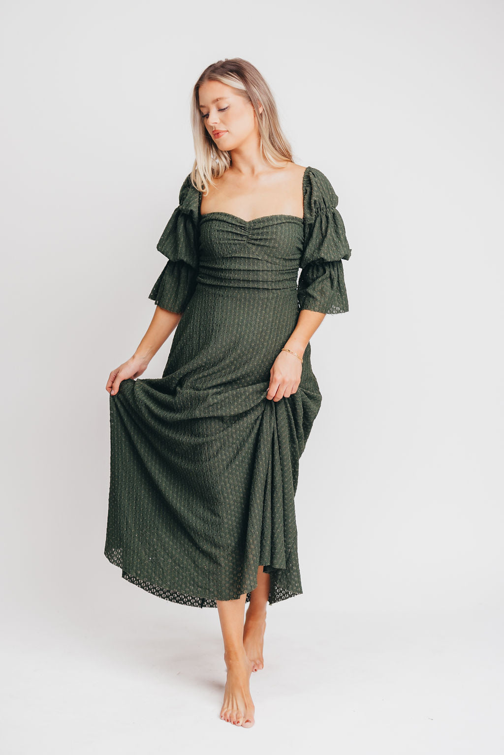 Corrine Tiered Sleeve Maxi Dress with Pockets in...