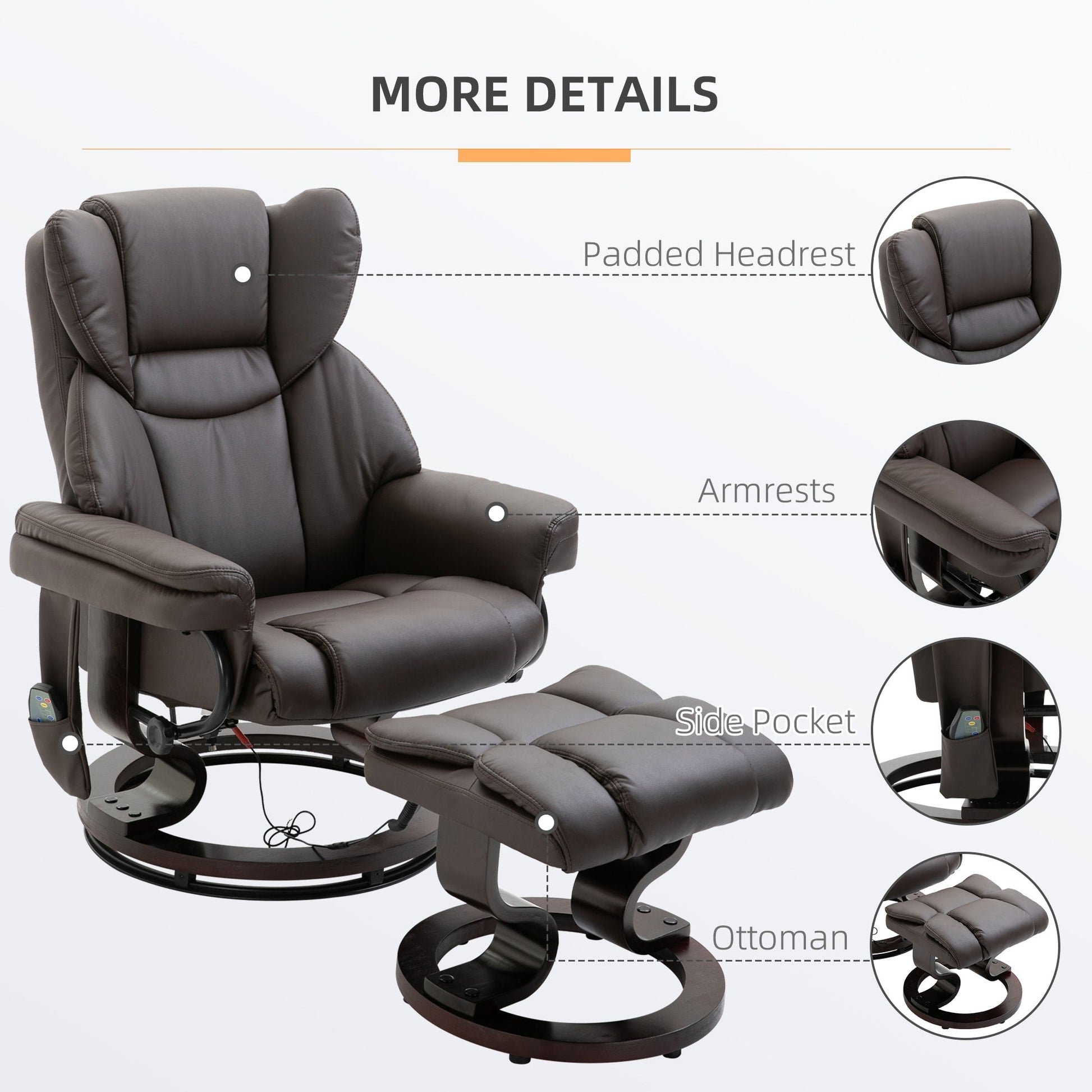 Small Faux Leather Recliner with Ottoman, 10-Zone Massage,...