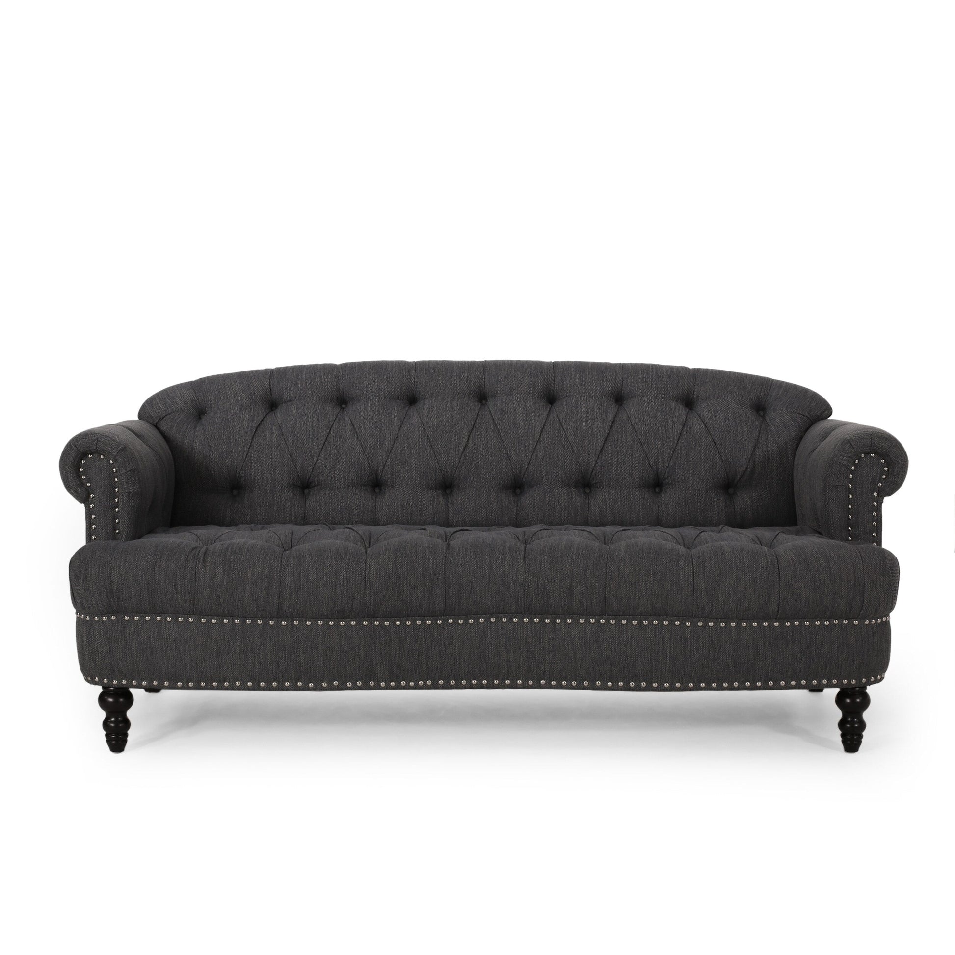Sofa, 74 Inch 3 Seater, Rivet Accents, Button...