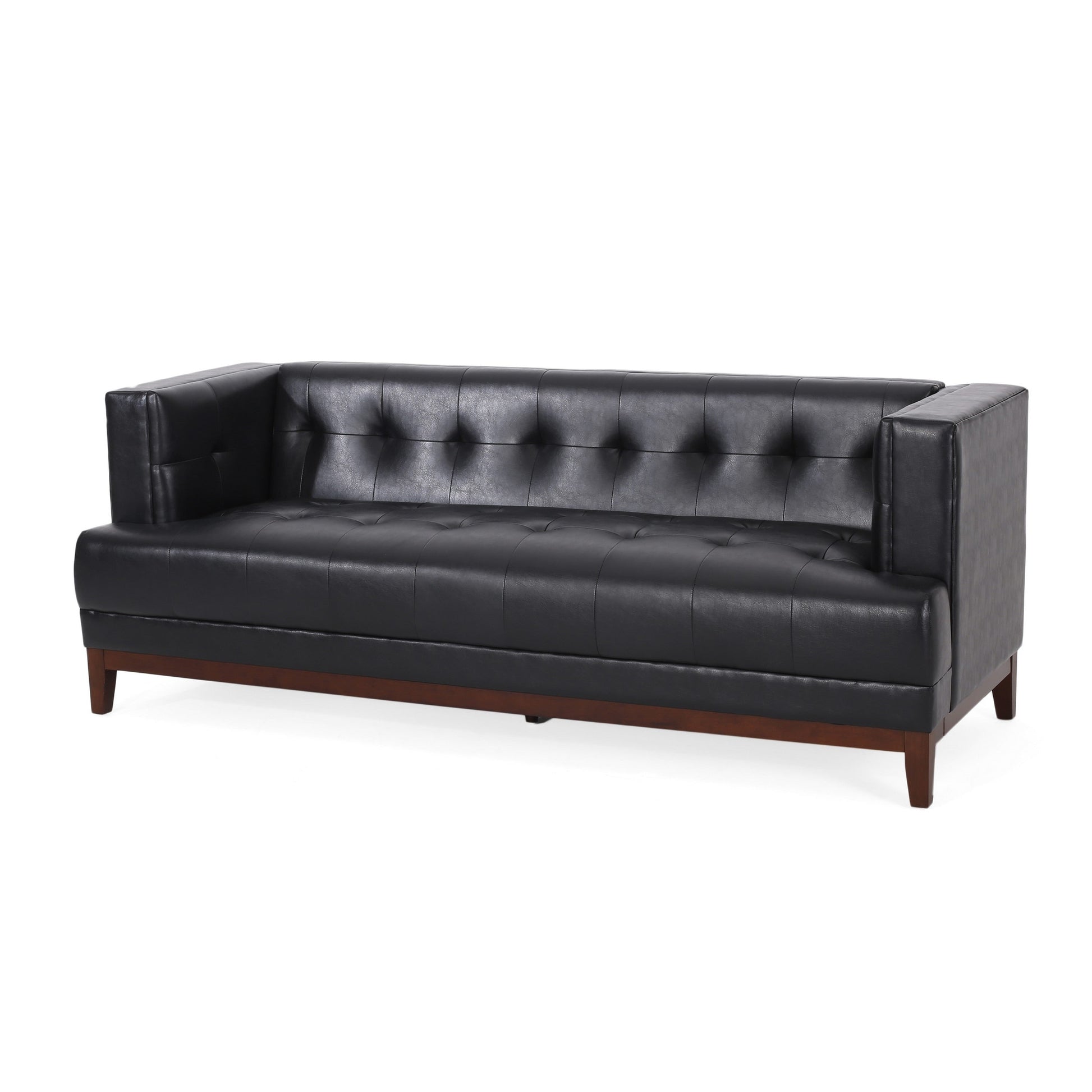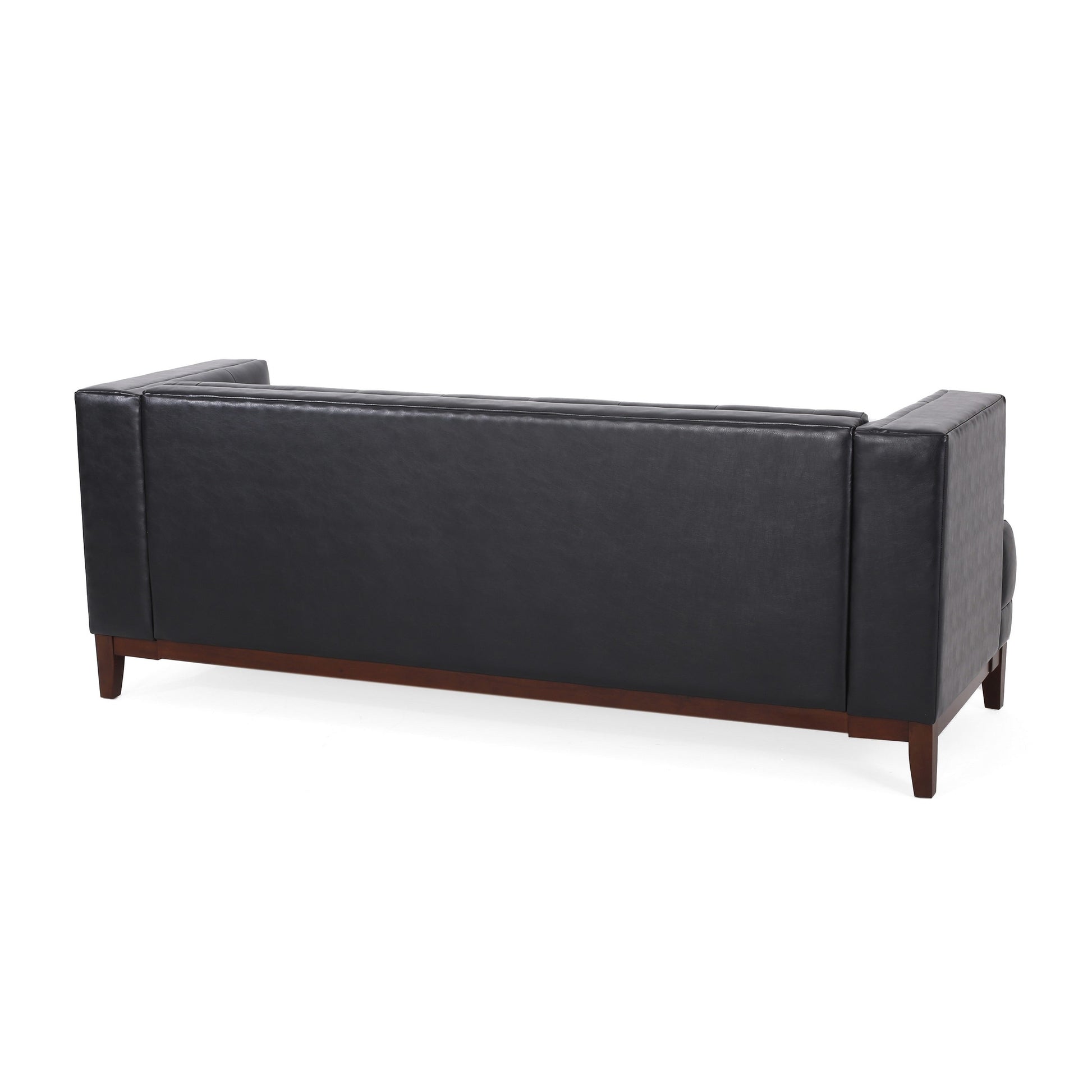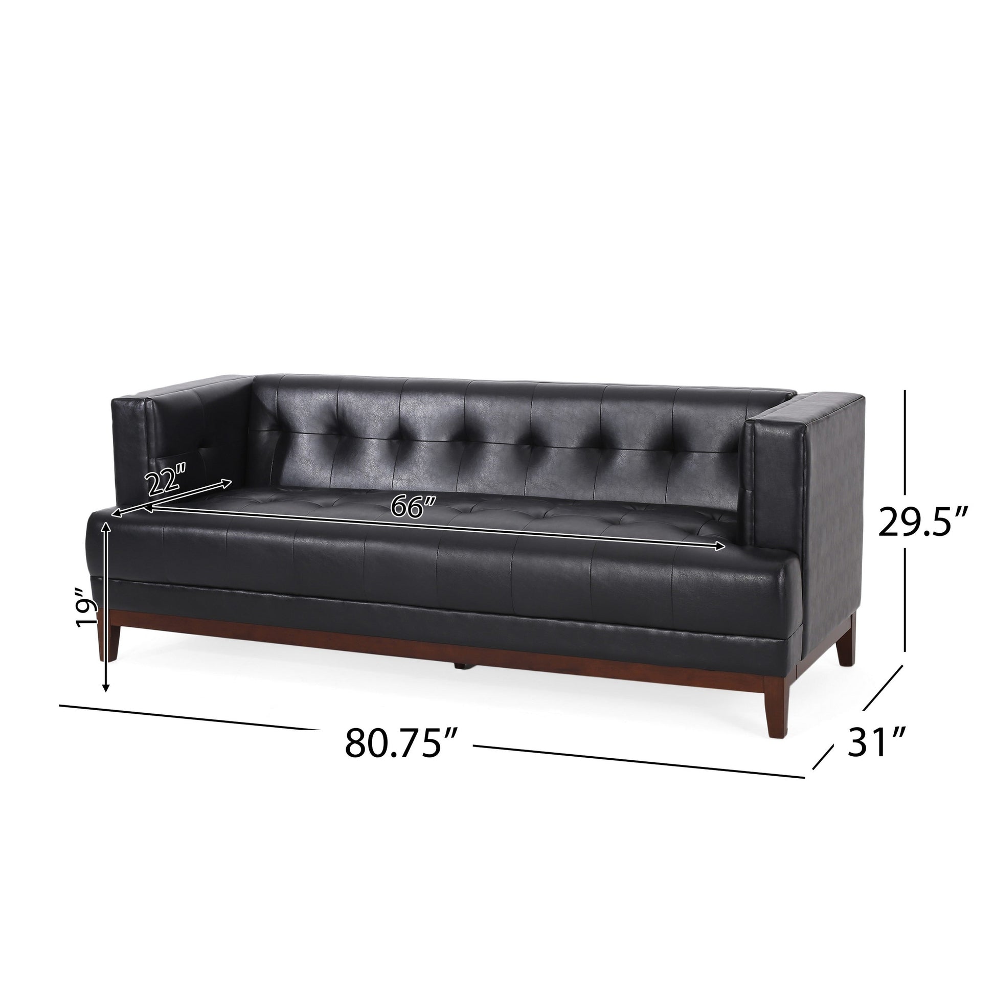 Sofa, 81 Inch 3 Seater, Tufted Black Faux...