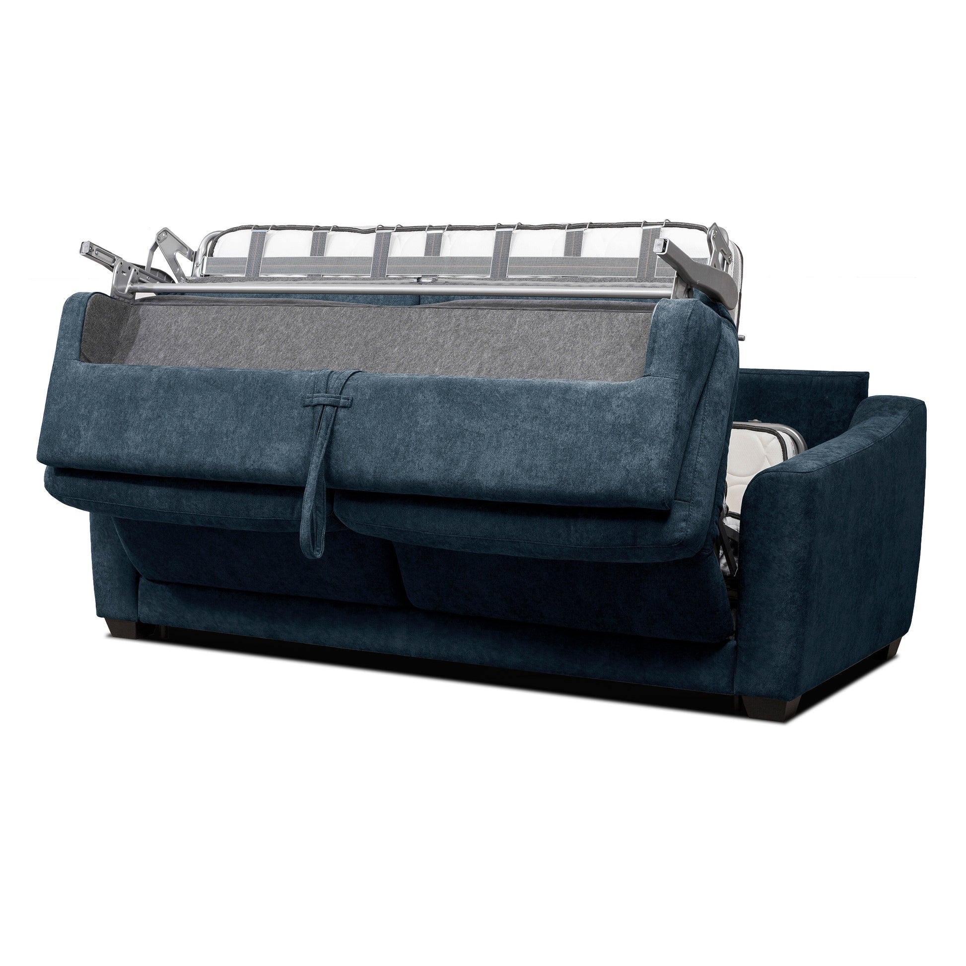 Meet the Vito Sofa Bed, your perfect blend of style and comfort. This navy beauty isn't just a sofa; it's your go-to for relaxation and a quick, easy transformation when you need an extra bed. The 8-inch Stearns & Foster pocket coil hybrid mattress delivers premium comfort, while plush cushions and slightly curved armrests provide the support you need for lounging. Designed to seamlessly blend with your living room, the Vito Sofa Bed ensures every moment at home is exceptional.