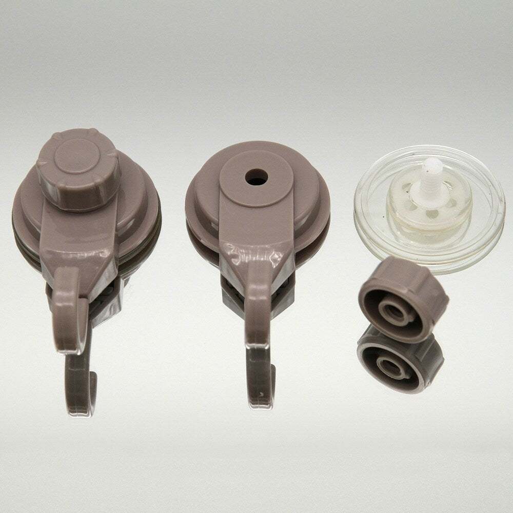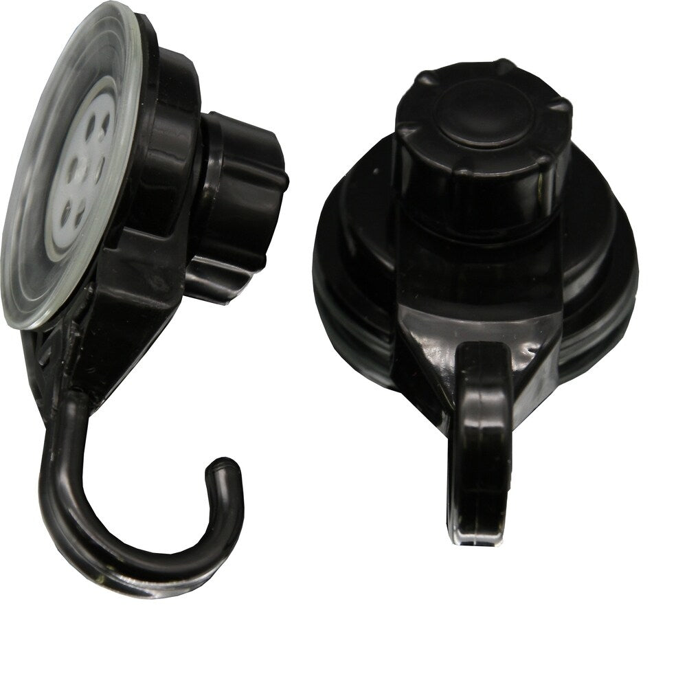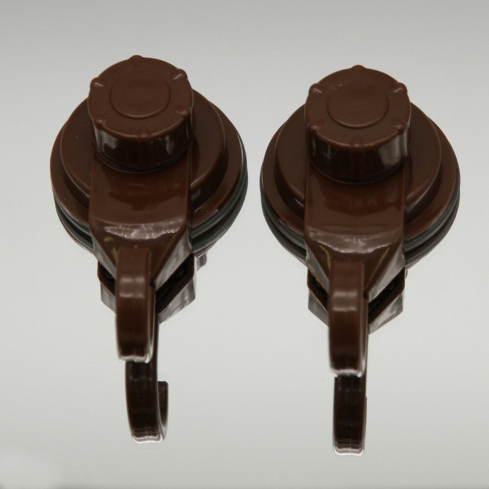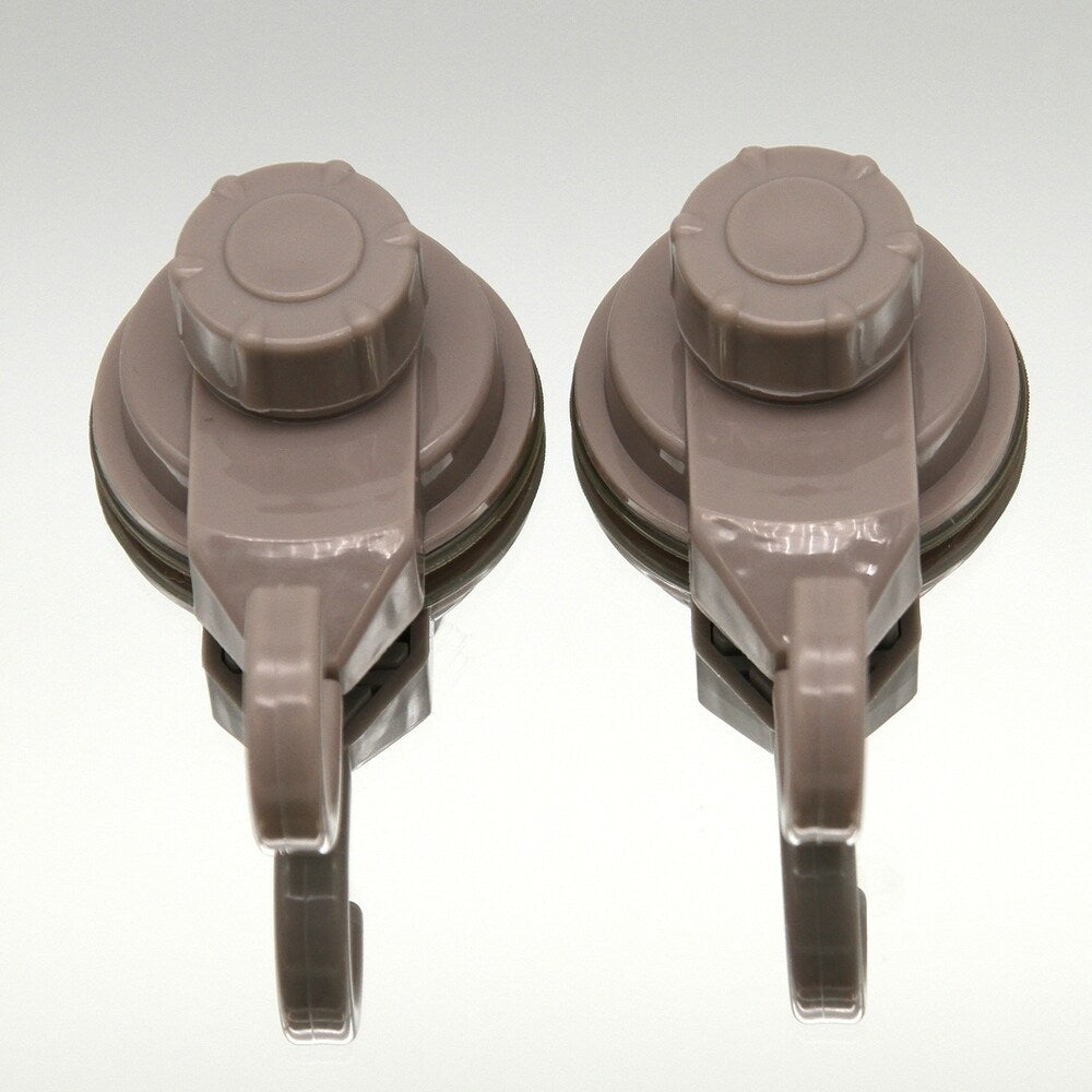 Store your bath brushes and sponges on strings and others accessories by taking advantage of unused space. This set of 2 holding hooks is made of durable Polypropelene and provides adequate storage for any accessories. It features one extremely strong suction cup for a secure adhesion to bath or kitchen tiles. Simply turn the suction cup button and hold firmly to your shower wall without any drilling, tools, or damage to your walls. It provides maximum suction on smooth non-porous surfaces such as tile glass fiberglass and some metals.Length of 1.8-Inch, depth of 1.4-Inch and height of 3.4-Inch. Wipe clean with soapy water. 9 colors available : white, black, green, pink, brown, tan, purple, gray and chrome. Imported from France, made in PRC. This set of 2 hooks will help you create a convenient hanging space and will give your bathroom an updated decor.