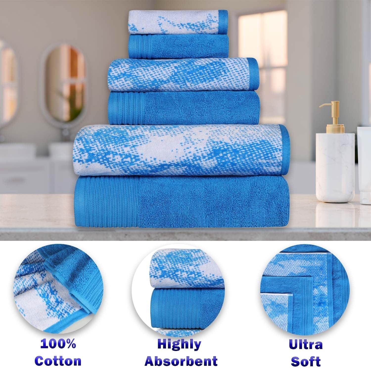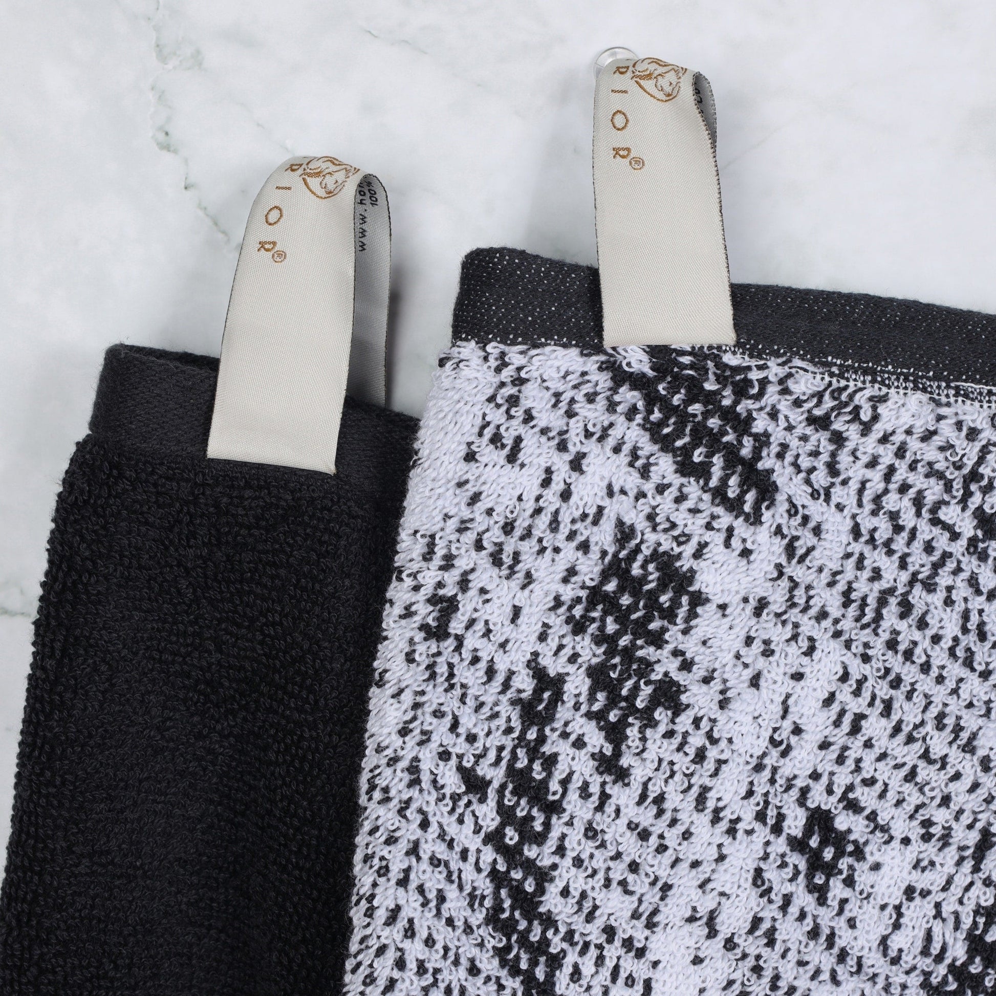 Indulge in the relaxing comfort of the Superior Cotton Quick-Drying Solid and Marble Towel Set each time you step out of the shower or bath. Our medium weight cotton towels have a double-ply design to provide comfort, durability, and versatile absorption. These plush and fluffy towels will sop up moisture effortlessly, keeping you warm and dry. This bath, hand, and face towel set includes a mix of vibrant solid pattern towels and towels with a contemporary marble effect pattern. Finished with a broad 4 inch rope-textured jacquard border and himmed edges, this towel set exudes elegance and luxury resort style. These striking towels come in a variety of colors, including; black, blue, brown, bronze, cyan, grey, terra cotta red, teal, and white to instantly update your bathroom decor.