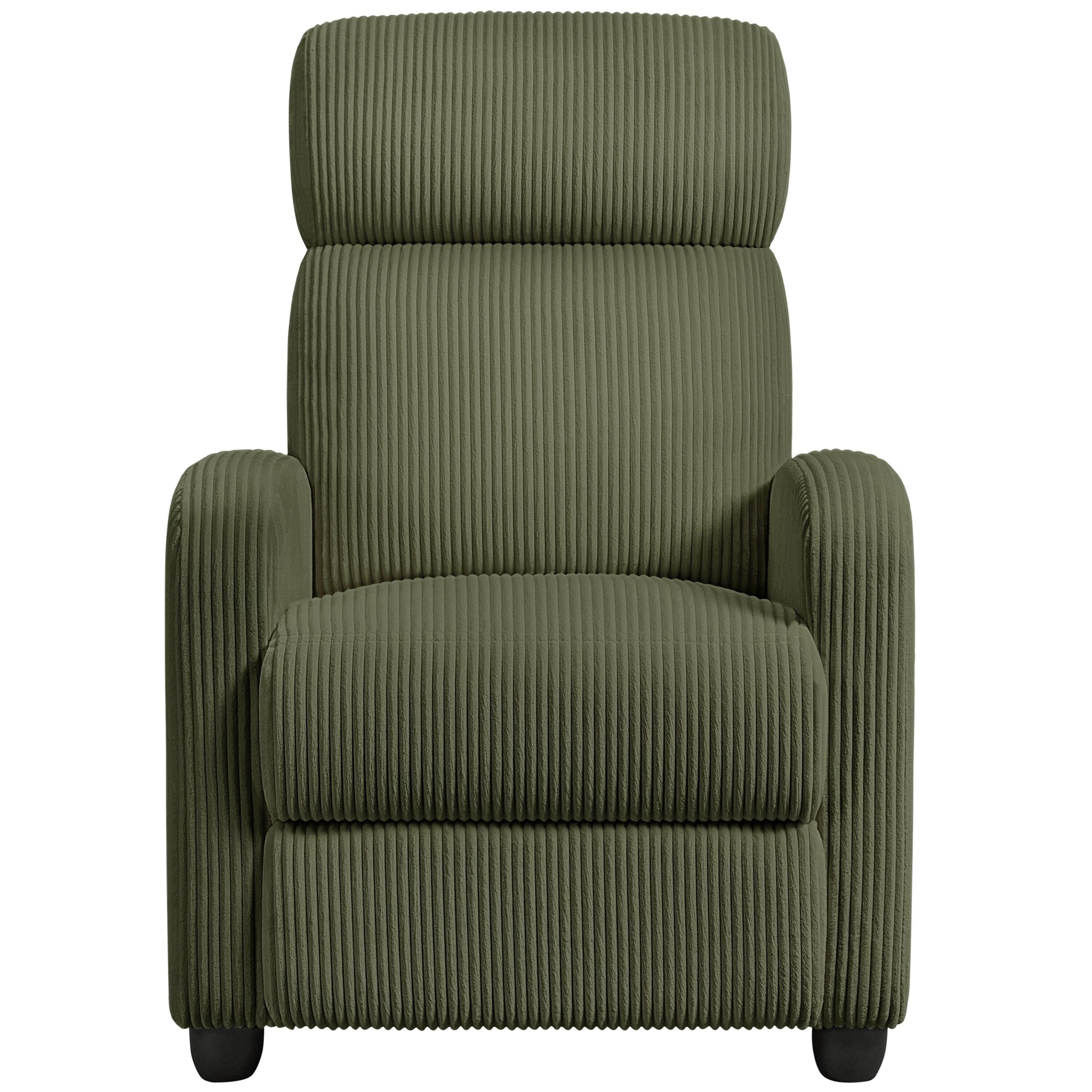 This ?recliner combines a robust engineered wood frame with soft corduroy ?upholstery, delivering both relaxation and sturdiness, supporting up to ?265 lb. Its cushioned seat, reinforced with pocket springs, and ?foam-filled backrest provide marshmallow-like softness. The chair ?features three adjustable positions, allowing you to sit, lounge, or ?fully recline to your desired comfort level. Easy to assemble in just ?minutes, this recliner is ideal for transforming any room into a ?personal relaxation place, offering a blend of style, comfort, and ?functionality. Ideal for living room, bedroom, office, etc.