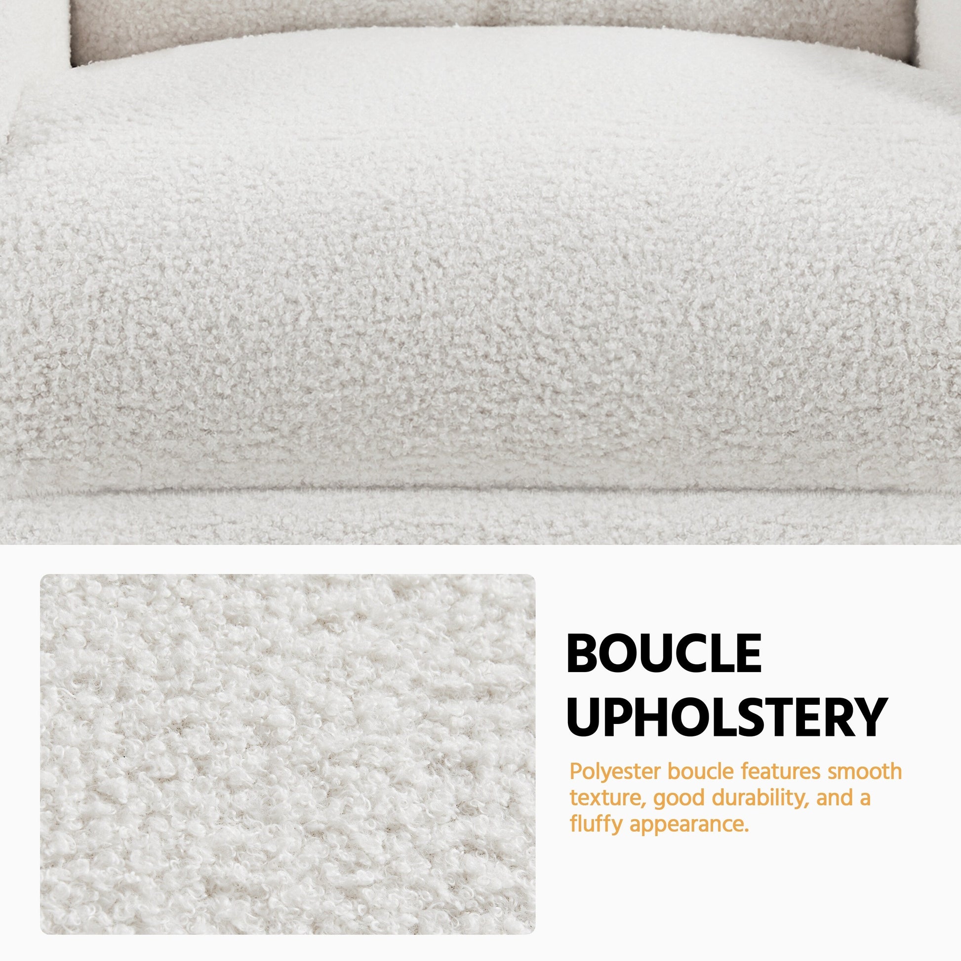 Durable Frame Luxurious Comfort: With a ?strong engineered wood frame and soft fiber padding, this recliner sofa ?is upholstered in a warm boucle and supports up to 265 lb, ideal for ?unwinding after a busy day